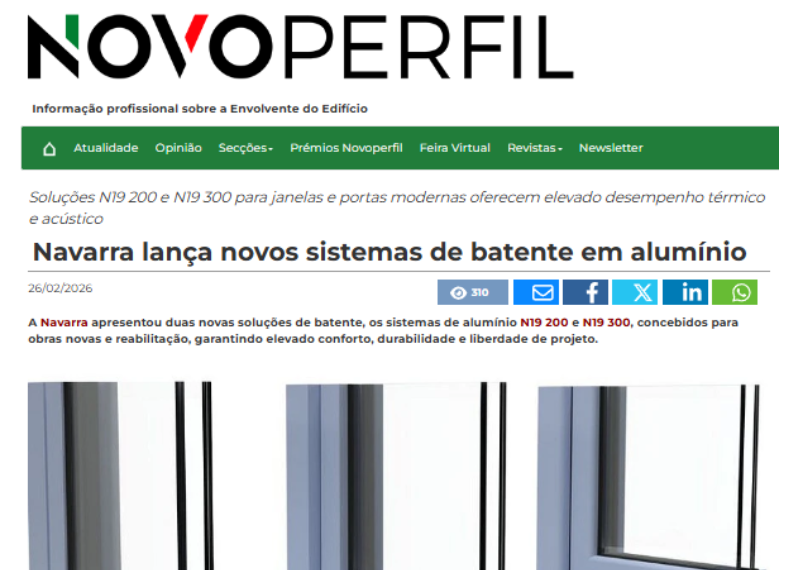 Thursday, 16 April 2026Os sistemas de batente N19 200 e N19 300 destaca-se pela sua versatilidade ao apresentarem variedade de geometrias com as linhas flat, reta e curvas. Estas linhas combinam rutura de ponte térmica com diferentes profundidades de aro e compatibilidade com vidros espessos, assegurando desempenho térmico e acústico de acordo com a marcação CE.